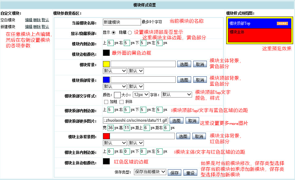 在需要编辑的模块后边点编辑,设置相关参数,根据自己的喜好调整样式