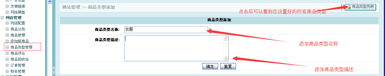 商品类型管理:在这里您可以添加/删除/价格/上下架等操作。