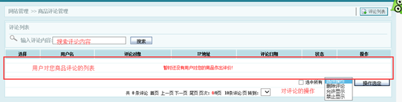 可对用户的评论进行操作,删除评论,是否显示评论等。