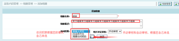 相册管理:可以在首页说自定页面调用您的相册。