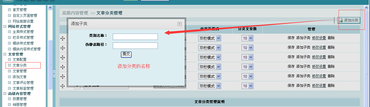 文章分类:  在这里您可以建立文章分类(支持三级分类),添加编辑文章和对文章中广告的管理,同时对文章列表的展现形式,列表显示的数量等操作。  添加完文章后在“首页管理”中可以轻易的把内容调到首页。