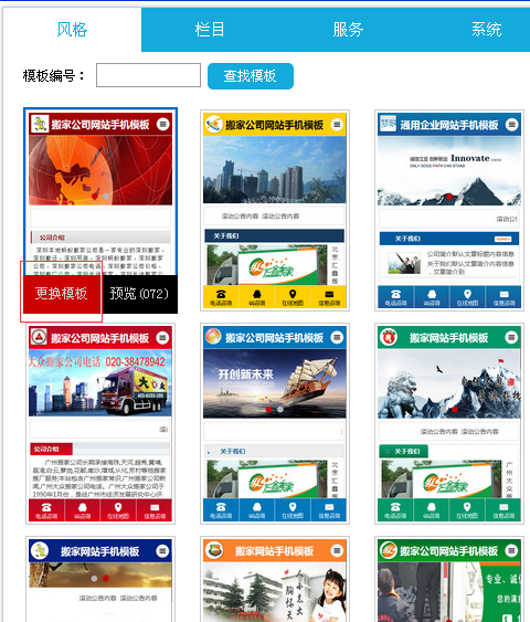 风格下面对着的有个模板编号的 您有看好的模板用编号来查找 更方便利于您的时间