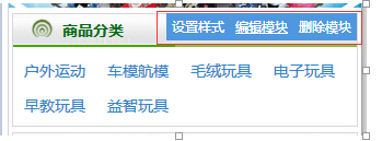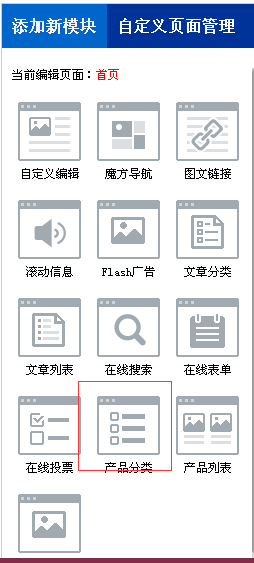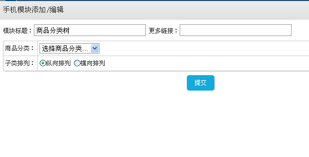 单击需要添加的模块类型,会弹出编辑页面 如图 产品分类(您在电脑上编辑好的分类 您在手机网站上调用就可以了)